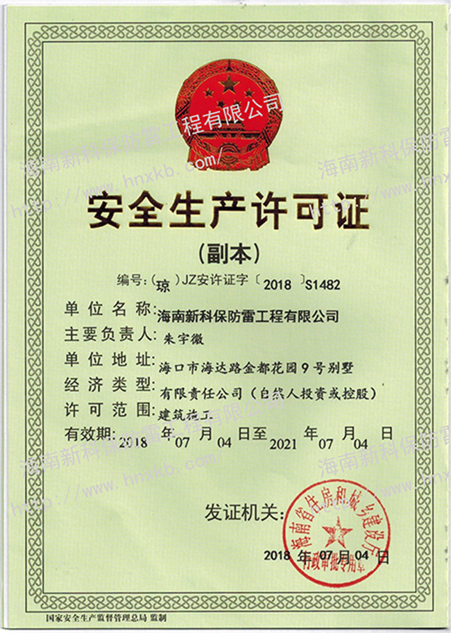 海南新科保防雷工程有限公司是一家集防雷技術(shù)研究、防雷檢測(cè)、防雷工程設(shè)計(jì)施工、安防監(jiān)控工程設(shè)計(jì)施工、建筑智能化施工、建筑水電施工于一體的高科技公司。在相關(guān)主管部門監(jiān)管下,致力于為客戶提供專業(yè)的安全防護(hù)、建筑智能化、水電技術(shù)等優(yōu)質(zhì)產(chǎn)品和工程服務(wù)。